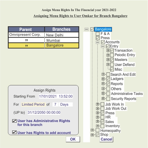 • In Accounts and Inventory, particularly, even creation of A/C heads and Items can also be restricted.